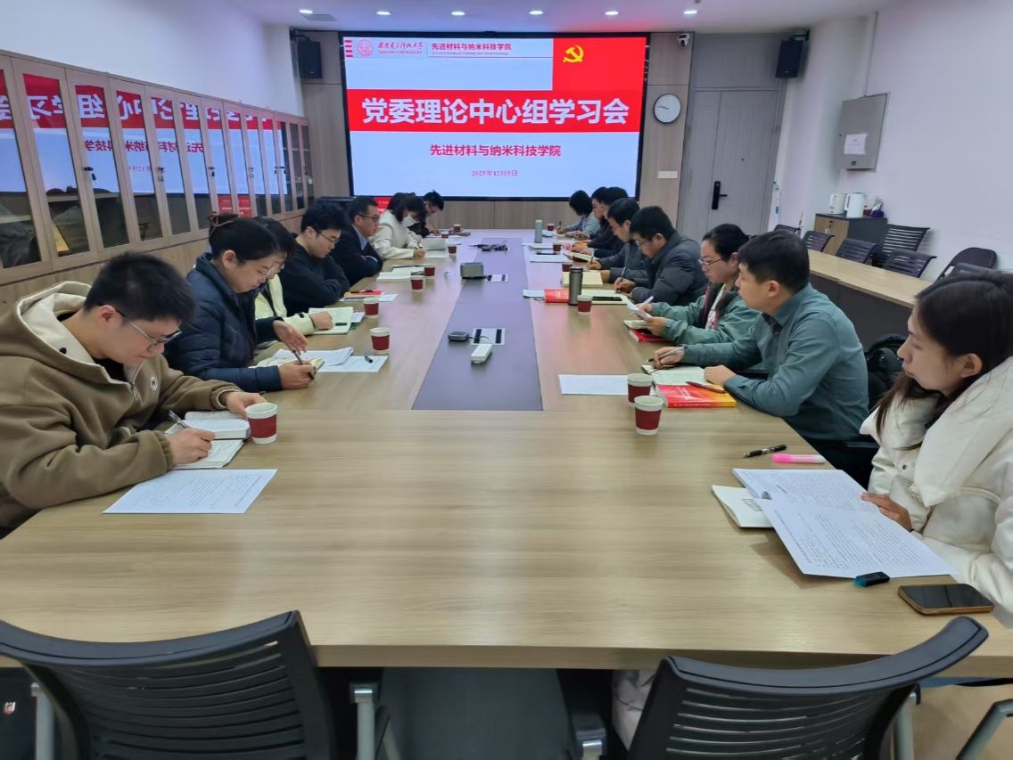 (通讯员 杜敏)12月5日上午,先进材料与纳米科技学院在南校区召开党委理论学习中心组学习(扩大)会,校党委常委、副校长朱文凯到会巡听指导。学院领导班子成员、两委委员、党支部书记、科级干部及辅导员等参加会议,学院党委书记宋刚锋主持。