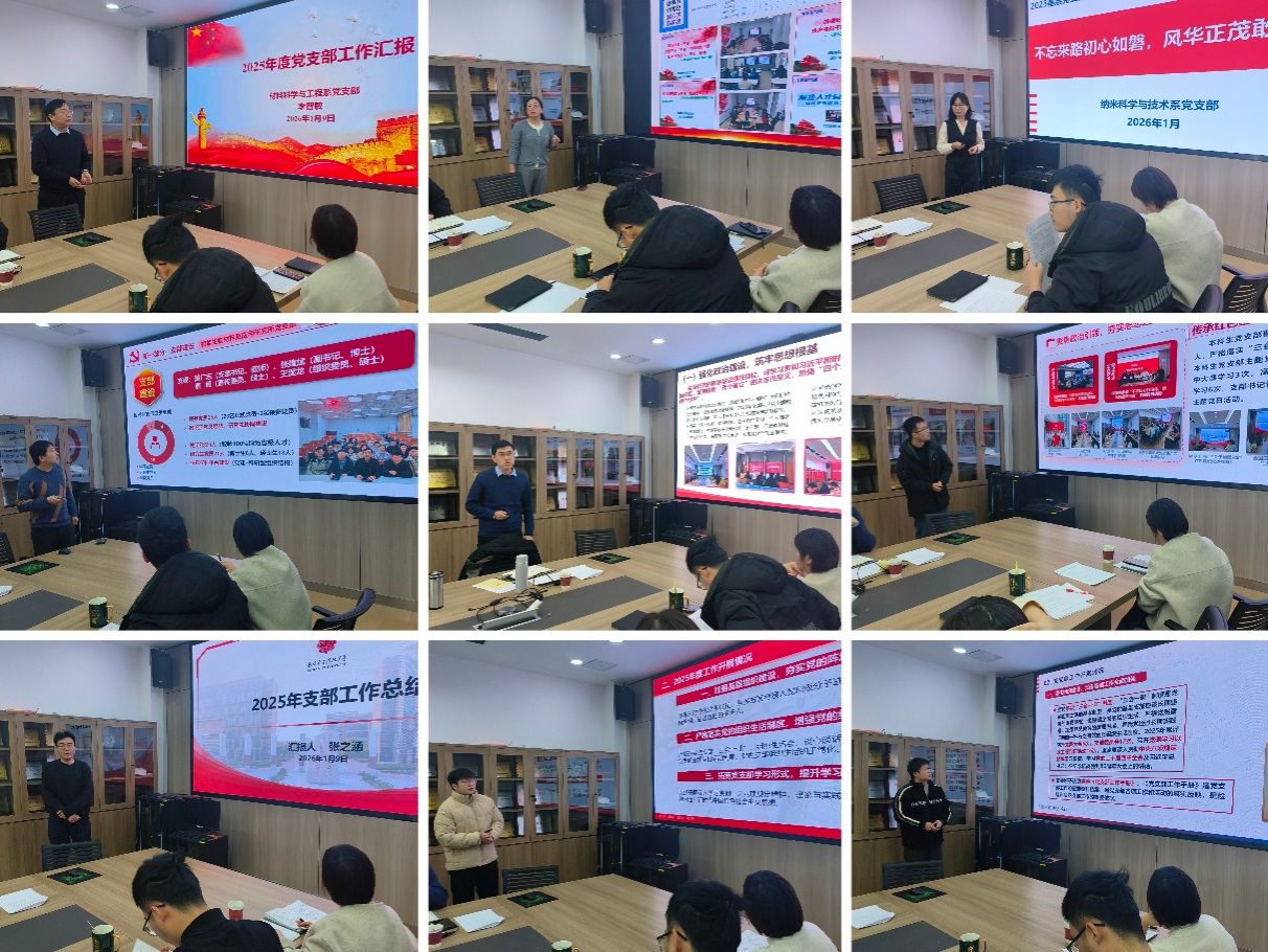 (通讯员 杜敏)1月9日下午,先进材料与纳米科技学院党委组织召开理论学习中心组学习会暨2025年度党支部书记抓基层党建工作述职评议会。学院领导班子成员、党委委员、纪委委员、全体党支部书记及师生代表参会,党委书记宋刚锋主持。