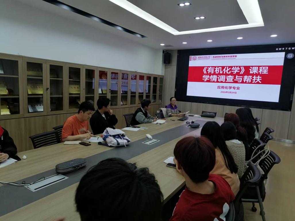 (通讯员 周利君为落实学业帮扶相关要求,助力学生成长成才,3月29日先进材料与纳米科技学院应用化学党支部书记周利君副教授,组织应用化学专业2217021班16名同学开展《有机化学》课程学情调查与帮扶活动,取得良好成效。