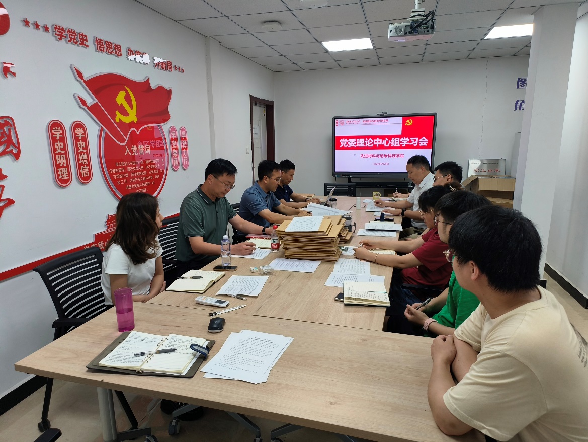 (通讯员 杜敏)6月28日,先进材料与纳米科技学院召开党委理论学习中心组扩大会,专题学习习近平总书记重要讲话精神等内容,学院党委理论学习中心组成员、党支部书记参加。会议由党委书记宋刚锋主持。