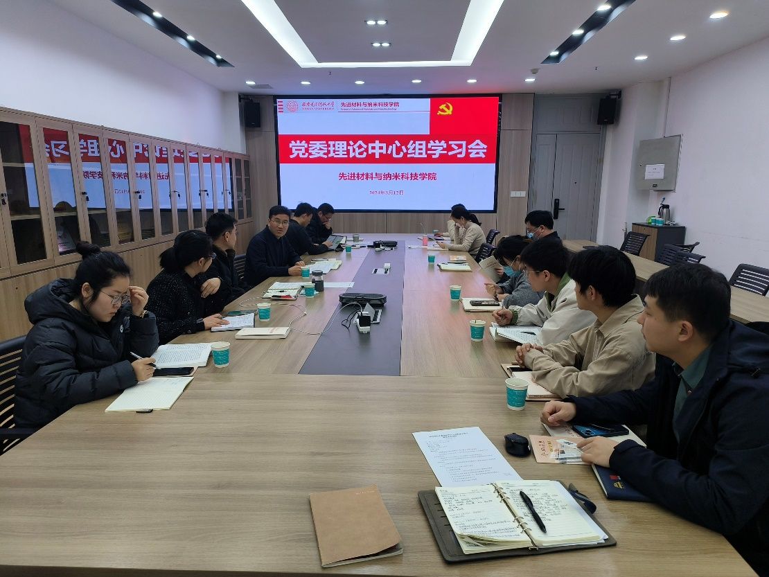 (通讯员 杜敏))3月12日下午,先进材料与纳米科技学院党委理论学习中心组在南校区召开会议,特邀国家市场监管总局反垄断执法一司副司长刘健线上作两会精神辅导报告,领导班子成员、党委委员、支部书记参加会议,党委书记宋刚锋主持。