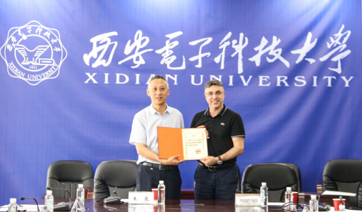 (通讯员 徐藤 朱桐)7月4日上午,前沿交叉研究院在南校区行政楼602会议室举行签约仪式,正式聘任Hossam Haick教授为西安电子科技大学前沿交叉研究院先进材料与传感交叉方向首席科学家。校长助理王泉,国际合作与交流部部长陈浩、先进材料与纳米科技学院党委副书记程远、前沿交叉研究院及部分学院中心代表参加了聘任仪式。聘任仪式由“智能传感”交叉前沿研究中心传感材料分中心主任吴巍炜主持。
