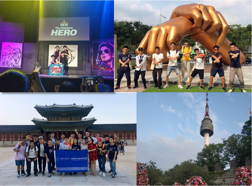 除了学习课程外,汉阳大学还组织了丰富的文化体验项目。包括观看涂鸦秀汉阳大学专场表演、游览江南区、夜游景福宫、参观南山塔、游玩世界第四大主题乐园“爱宝乐园”等活动,让学生们深度体验韩国美食及文化。