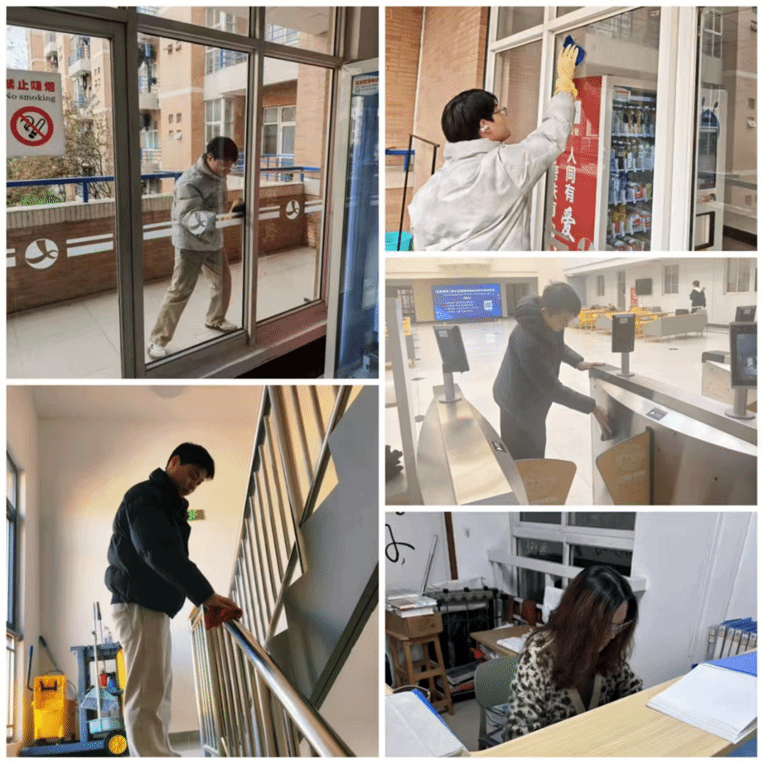 走进宿舍区,参与楼管体验与房源核查的同学们,手持登记表穿梭于各楼层,认真核实住宿信息,协助维护环境卫生与公共秩序。从“被服务者”到“服务者”的身份转换,让同学们切身感受到宿管工作的琐碎与不易,也更懂得了尊重与配合。
