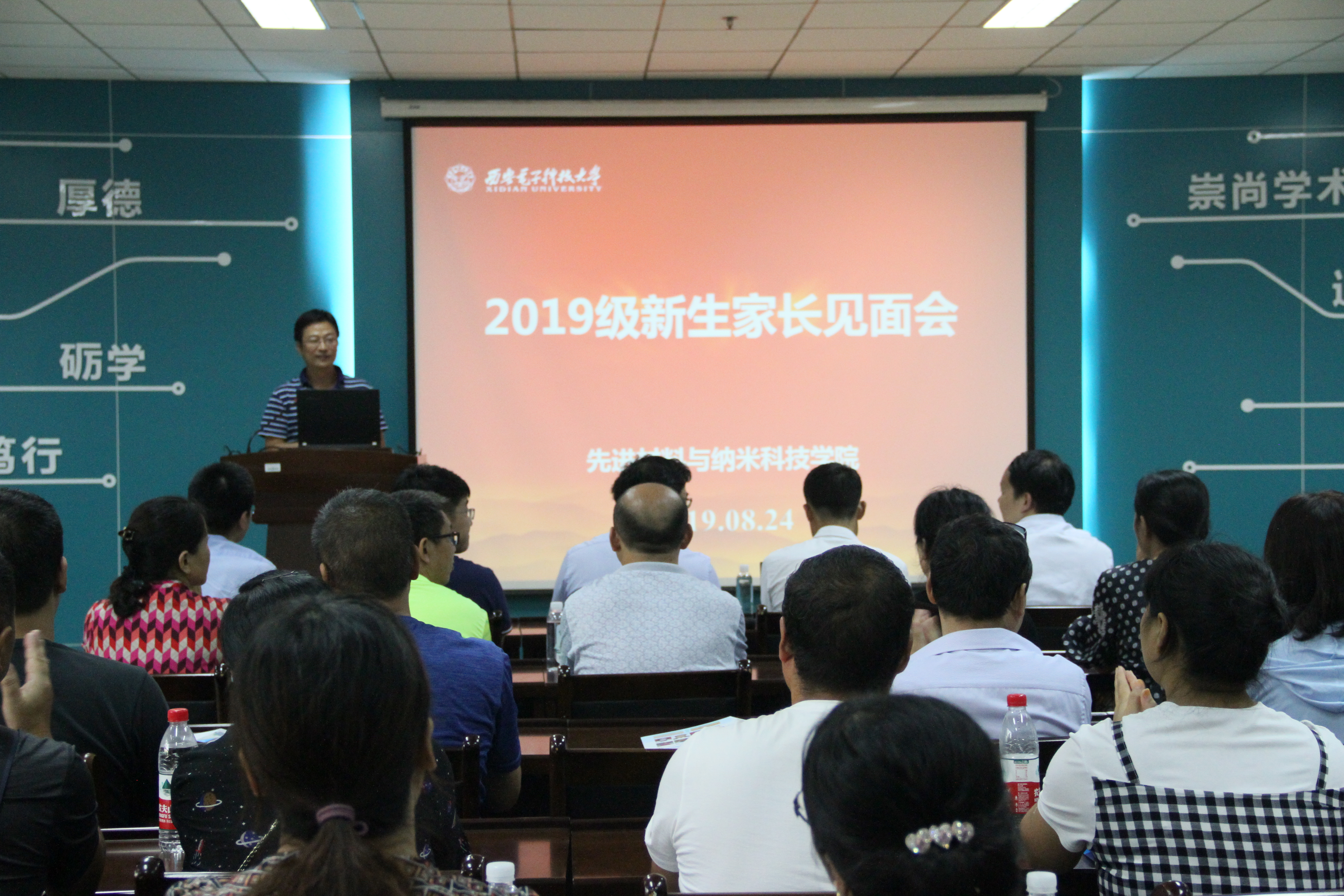 (通讯员 崔康)为搭建家校沟通平台,帮助2019级学生家长全面了解学院情况,8月24日下午,先进材料与纳米科技学院新生家长见面会在G楼118举行。学院党委书记卢硕、副院长杨如森、副院长高宝铜、院务助理施建章、办公室主任邓悦、2019级本科生导学团队导师代表吴巍炜,辅导员崔康、李逸君、韩熠阳,高年级优秀学生代表赵嘉璇、周瑞琪、纪宁以及新生家长、部分新生共约100人出席见面会。会议由学院党委副书记程远主持。