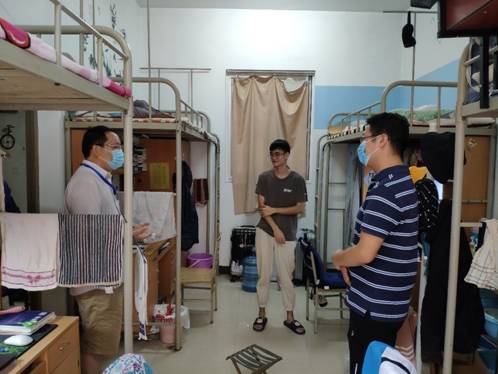 (通讯员:崔康)为了解学生复学后的学习生活情况,8月18日下午,先进材料与纳米科技学院全体领导班子走访了学生实验室,并深入学生宿舍,关心学生思想动态、考试准备情况、生活困难等。