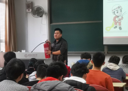 肖磊结合校园生活实例,从日常实际工作出发,以触目惊心的火灾案例为引例,分别从消防安全法规要求、火灾预防、火灾种类、灭火剂的分类及使用方法、针对不同火灾场景如何正确开展安全疏散与逃生等消防知识进行生动的讲解。随后他向在座师生展示和讲解了灭火器及消防面罩的使用方法和注意事项。