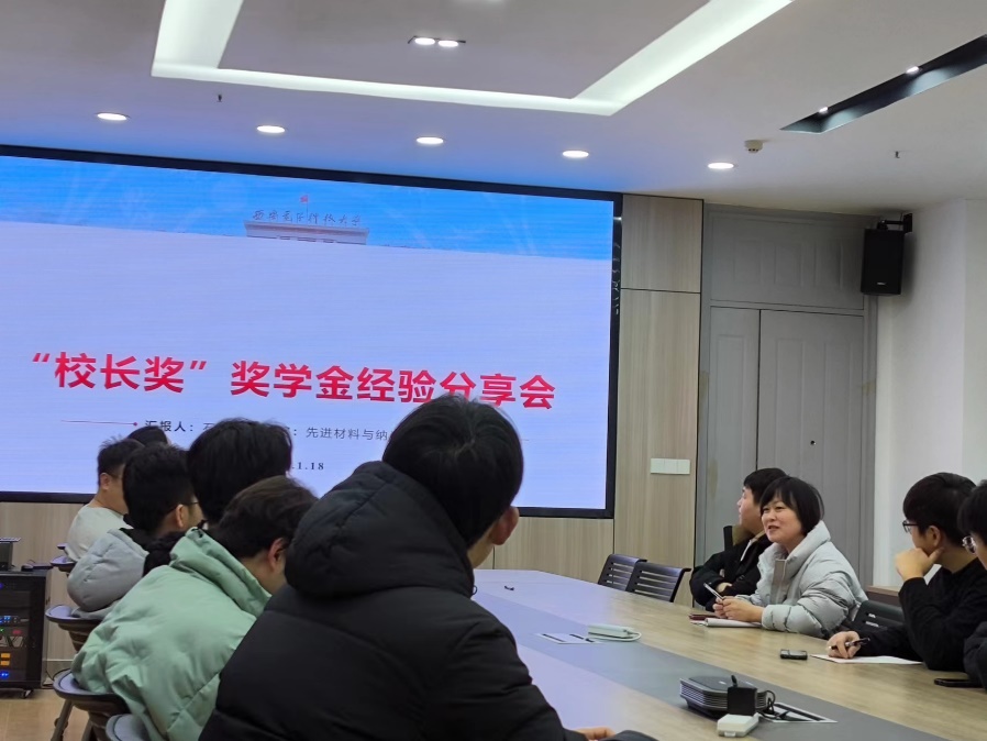 (通讯员 陈星)为了让广大研究生行有示范、追有目标,更好地激发广大学子永攀科技高峰的决心,先进材料与纳米科技学院于1月18日上午举办了2023年度“校长奖”奖学金获得者经验分享交流会,“校长奖”获得者王鹏飞和“校长奖”提名奖获得者石换莉,两位同学分别就他们自身的学习成长经历为同学们进行分享,研究生辅导员刘男主持了此次交流会。