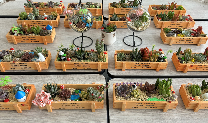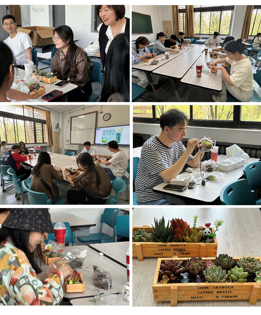 最后活动在欢声笑语中落下帷幕,同学们尽情享受着多肉创作带来的成就感,纷纷举起作品拍照留念,记录下这个美丽的瞬间。这一活动,同学们在细碎的时光研磨中品味到生活的明媚与浪漫。