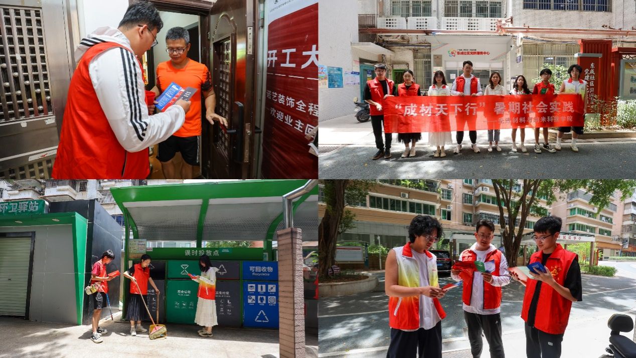 学院“材行天下”实践团,积极加入广东青年大学生“百千万工程”突击队,来到广州市天河区天园街东成社区开展“垃圾分类伴我行”的社区实践。同学们兵分多路走进社区各个角落,利用所学的材料、化学专业知识,以通俗易懂的语言和详细讲解、互动问答、现场演示的方式向居民们传递垃圾分类的益处和操作方法。此外,他们还前往社区垃圾站点指导居民正确区分可回收物、有害垃圾、湿垃圾和干垃圾,确保每一类垃圾都能得到妥善处理。往来的居民纷纷向同学们竖起了大拇指,并说此举改善了夏天社区垃圾站虫蝇乱飞、污水四溢、臭气熏天、污染环境的现象,并对他们奉献、友爱、互助、进步的垃圾分类指导活动给予了充分的肯定和感谢。
