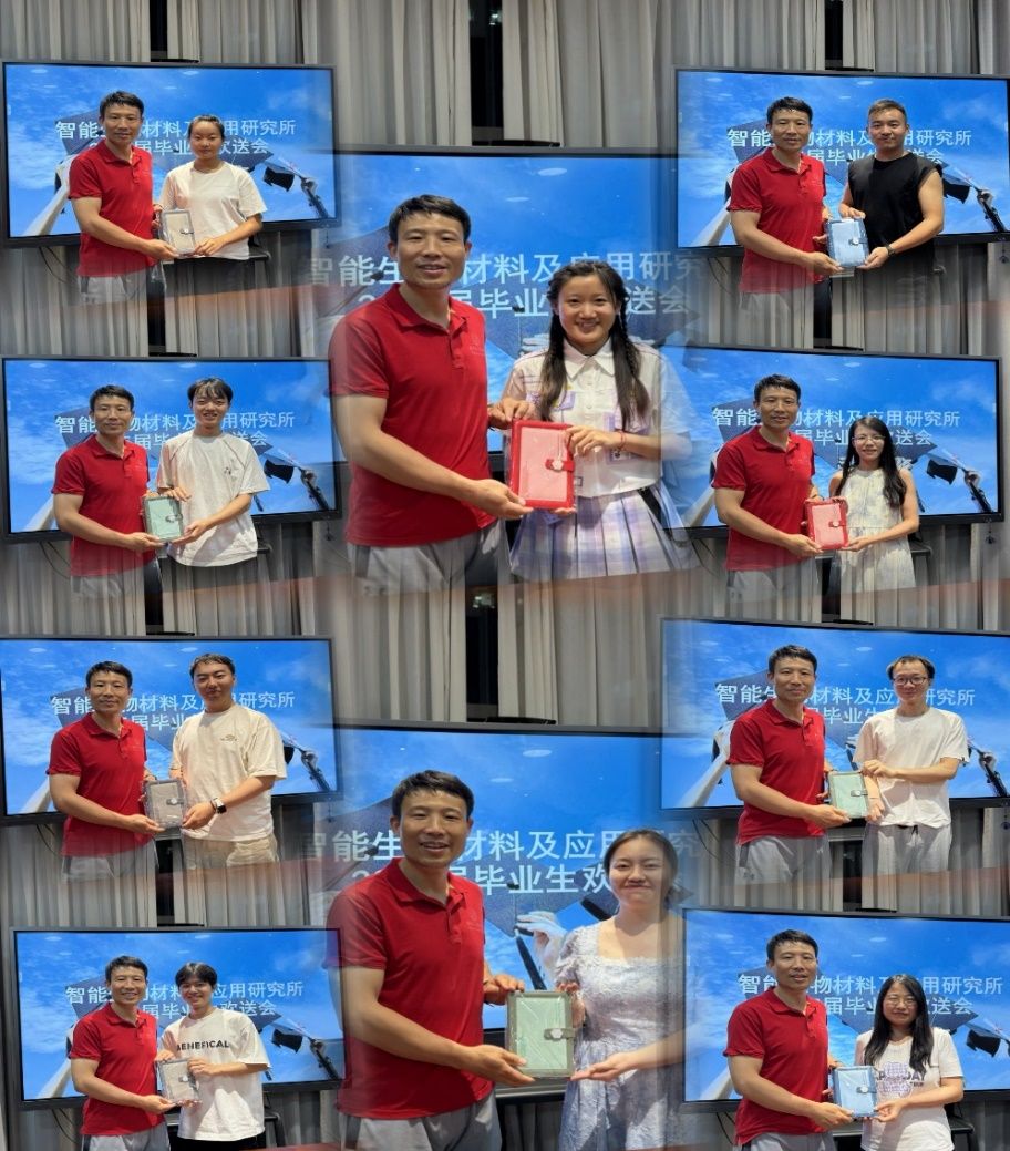 杨如森教授代表团队向2025届毕业生赠送了毕业礼物,再次叮嘱大家要牢记西电的校训:厚德、求真、学、笃行,不忘在智能生物材料及应用研究所“三好三有”团队度过的三年学习生涯,勿忘师生情、同窗谊,并祝愿智能生物材料及应用研究所团队2025届毕业生毕业快乐,前程似锦,愿每一位毕业生都不惧困难,勇往直前,努力成长为国家的栋梁之才!