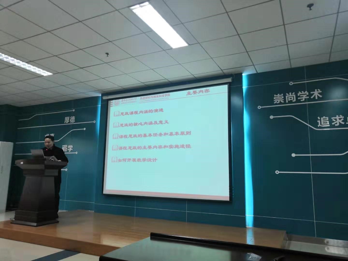 首先,施建章老师对国家和学校关于“课程思政”的相关政策进行了解读。施老师指出,如何充分发挥好每门课程蕴含的思想政治教育元素的思想政治教育功能,形成专业课教学与思想政治理论课教学紧密结合、同向同行,要做到润物无声的全课程育人格局,一定要注重加强教学课程的设计环节。教师首先要明确讲什么,如何讲,知道哪些属于课程思政的范畴,如何进行思政课程的教学设计这些问题。在课程教学开展前,一定要按照学校要求制定和实施“课程思政”表,精心凝练思政元素和经典案例,认真填写教学设计表,撰写课堂教学案例,提出课堂-网络-实践-导学一体化的课程建设思路,着力打造学院的精品课程。