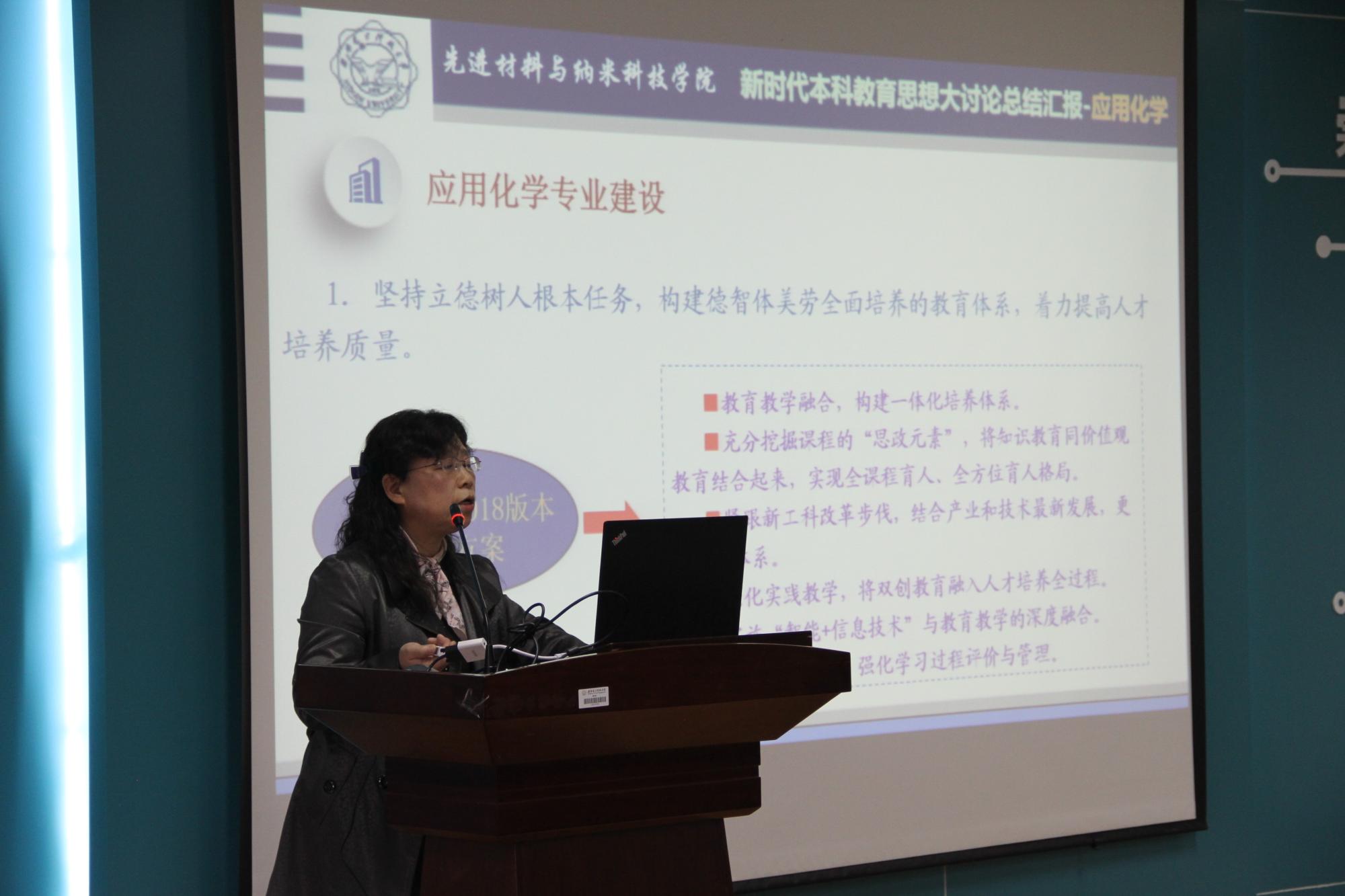 (通讯员 施建章 杜小红)10月25日下午两点,先进材料与纳米科技学院在南校区G118会议室组织召开了“新时代背景下一流专业建设与人才培养”为主题的本科教育教学节活动。各专业负责人将前期新时代本科教育思想大讨论的开展情况和取得的成果进行了总结汇报。学院全体领导班子、学院各系所负责人、教师代表以及学生代表参加了本次活动。本次教育思想大讨论总结汇报大会由院务助理施建章主持。
