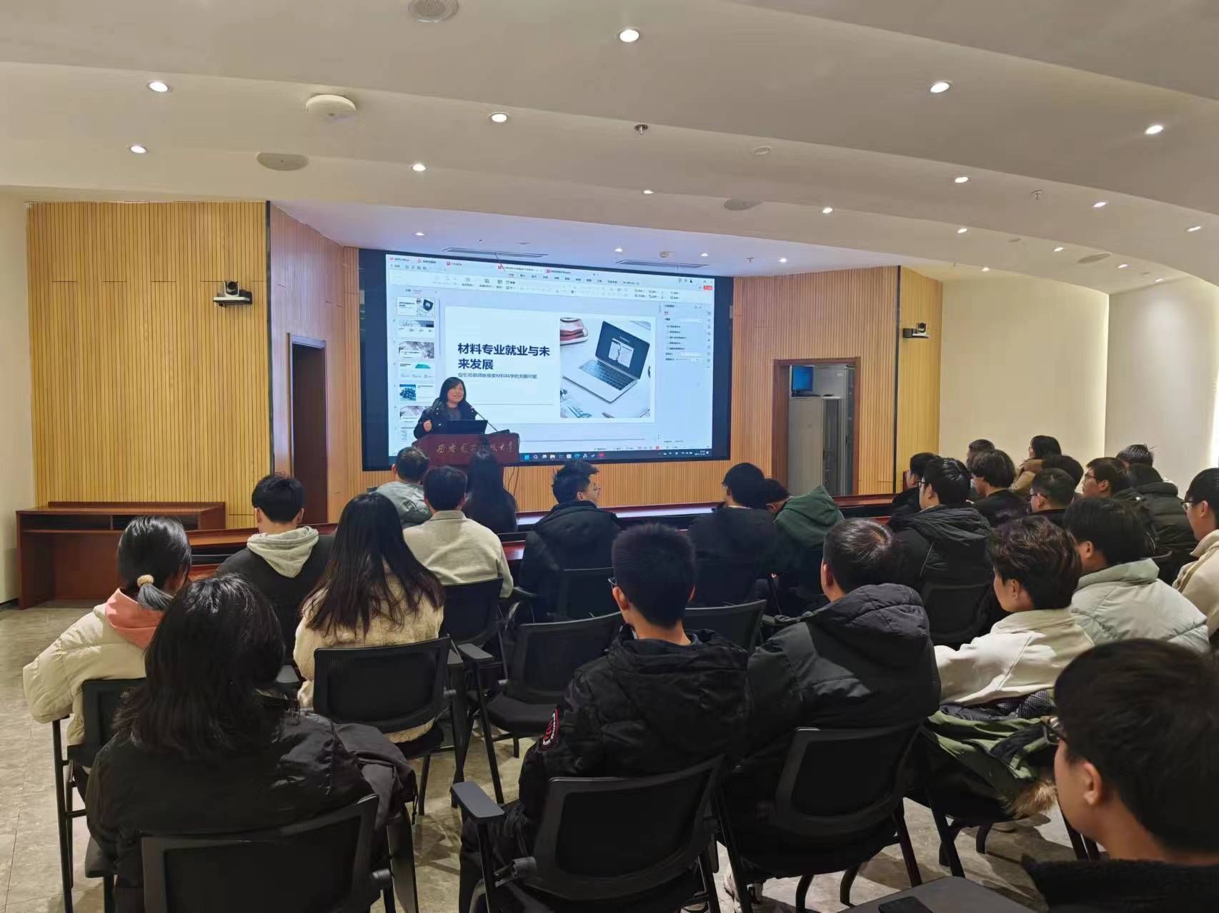 活动伊始,校友杨倩与刘治宏结合自己的工作经历,详细阐述了材料专业在企业中的应用及发展前景,并分享了个人在职业发展过程中的感悟与收获。杨倩详细介绍了她所在企业的文化和招聘流程,强调了综合素质在招聘过程中的重要性,鼓励同学们在日常学习生活中不断提升自己的专业技能、逻辑思维能力、表达能力等,为将来的求职之路做好准备,为同学们提供了宝贵的参考。校友刘治宏分享了自己入职后的工作经验,他从招聘角度特别强调了逻辑和表达能力的重要性,并指出西电材料专业大有可为,让同学们对企业工作环境和要求有了直观认识,鼓励同学们在日常学习生活中注重能力培养,积极尝试不同领域,不断提升个人的综合素质和能力