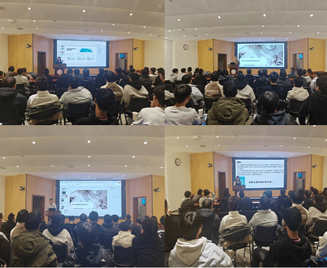 紧接着,三位即将毕业的大四本科生学长学姐也上台分享了学习与职业规划经验。刘佳秀和余快分享了自己的保研经历,为同学们介绍了保研的流程与注意事项,包括时间线安排以及文书材料准备等方面,并以亲身经历讲解发邮件、报名、面试的具体流程及注意要点,鼓励同学们勇敢迈出保研申请的步伐。陈子宁分享了自己的求职经历,他鼓励同学们要勇于面对自己的不足,多反思,不断改正自己在求职过程中的不足,并敢于尝试新的领域,这样才能在未来的职业道路上走得更远。