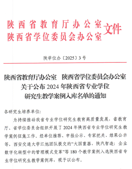 近日,陕西省教育厅办公室陕西省学位委员会办公室联合公布了2024年陕西省专业学位研究生教学案例入库名单先进材料与纳米科技学院胡英教授的教学案例《氢能时代绿氢技术的挑战》成功入选陕西省专业学位研究生教学案例库这不仅是学院教学成果的又一重大突破,也是我院近年来成功入选的第三个优秀教学案例,充分彰显了学院在专业学位研究生培养领域的卓越实力与创新能力。